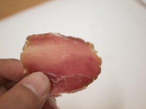 生ハムからちゃんと発酵した匂いがするんです。味も何かを漬け込んだような味ではなくコクのある旨味が感じられます。