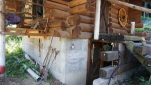 丸太のログハウスなので、木と木の間に隙間がどうしてもできちゃうのですね。